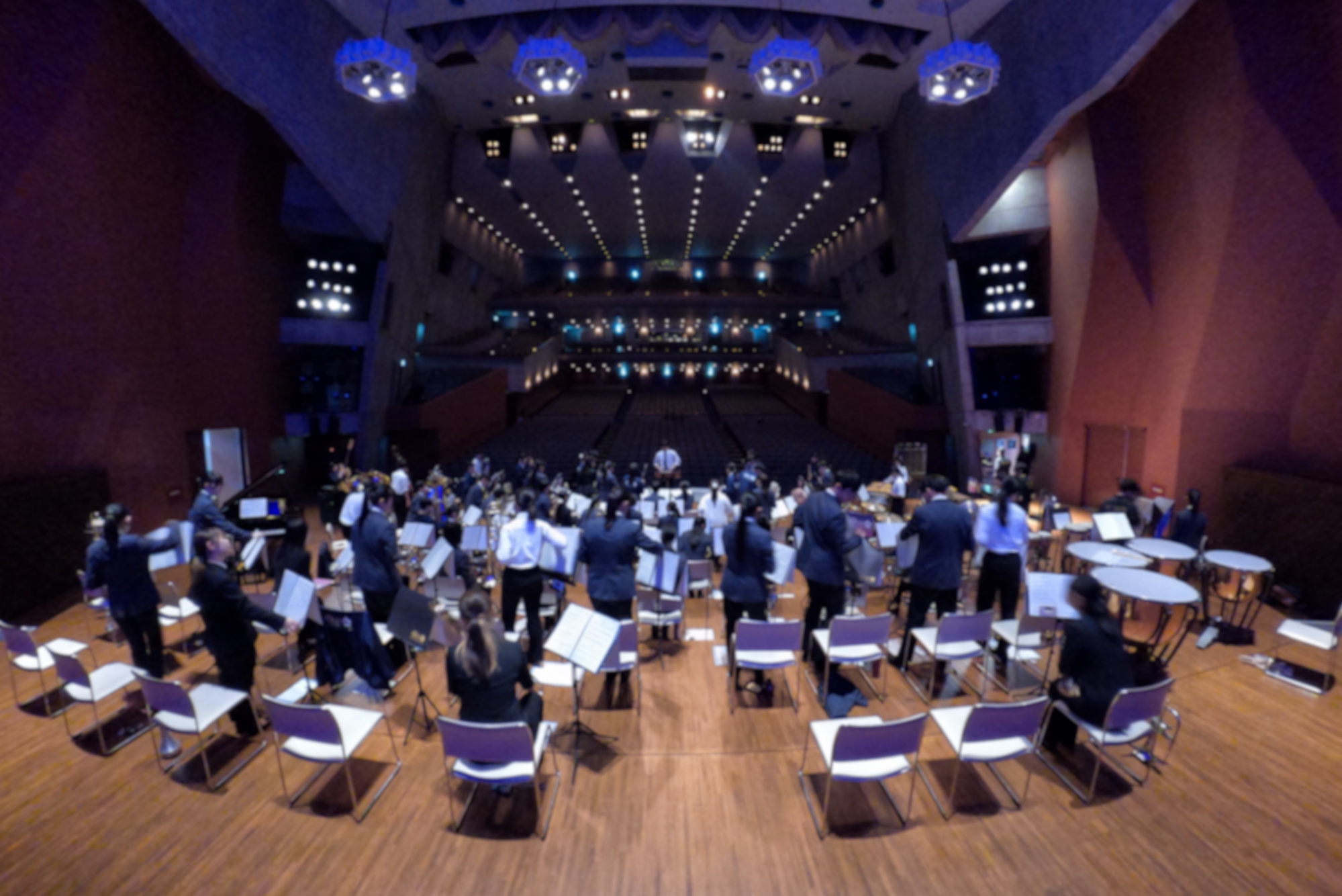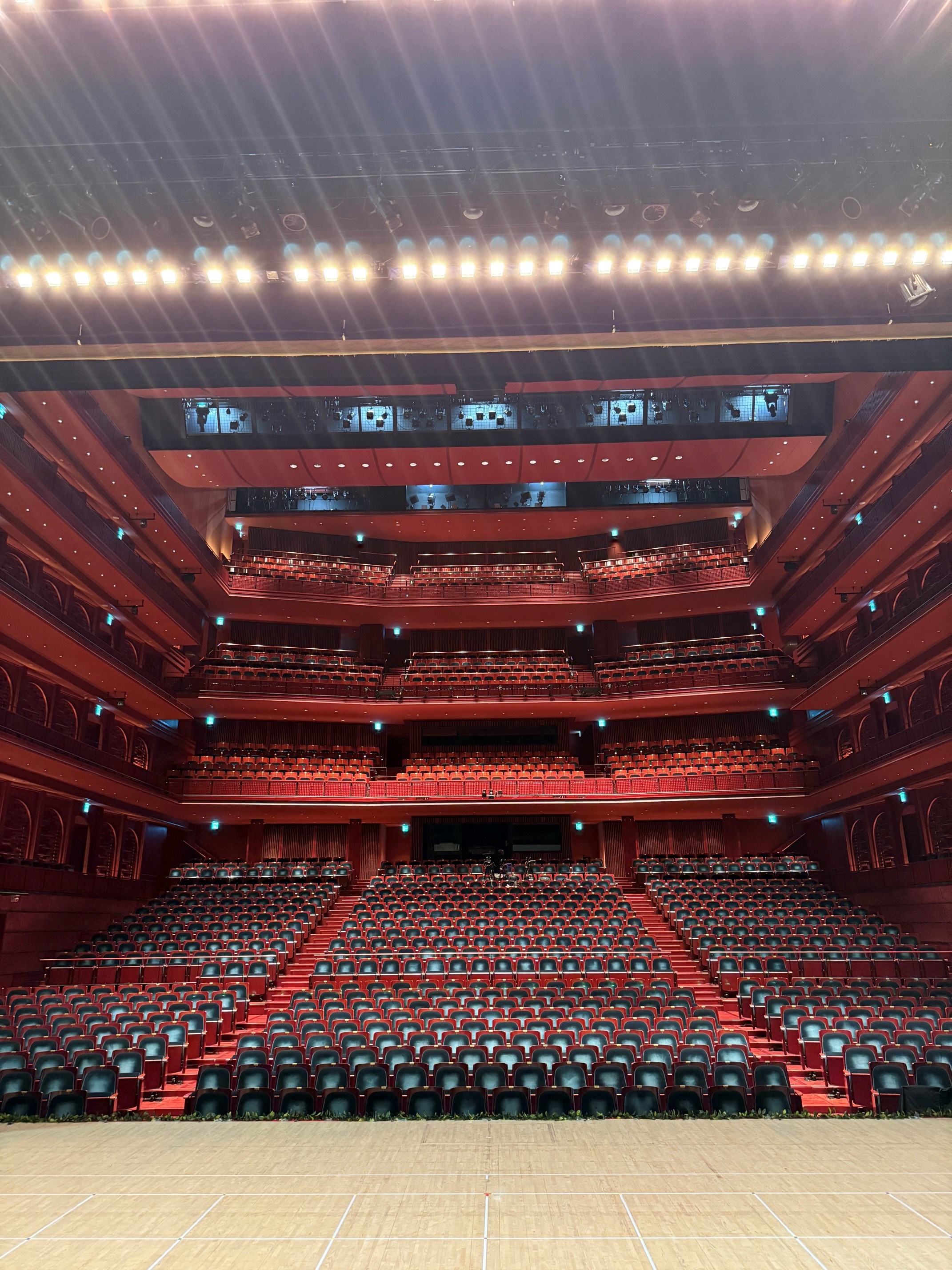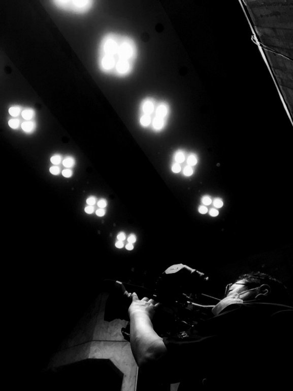 県外へも コンサート、ダンス、イベント等、出張撮影しております。写真はリハ風景ですが、リハならではのステージ上でバックからのショット。お気に入りの会場で広さや美しさ、ステージから見たライティングが特に綺麗です。